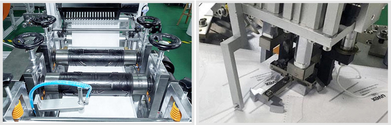 产品配置及特点:本机自动化程度高,通过PLC编程控制,可做到口罩压纹.对折、切边、鼻梁条内置、一次成型,特殊的制作工艺确纹路清析、在生产时不变形,可较大限度的减少材料浪费,而且有效的保证了生产出的口罩质量。